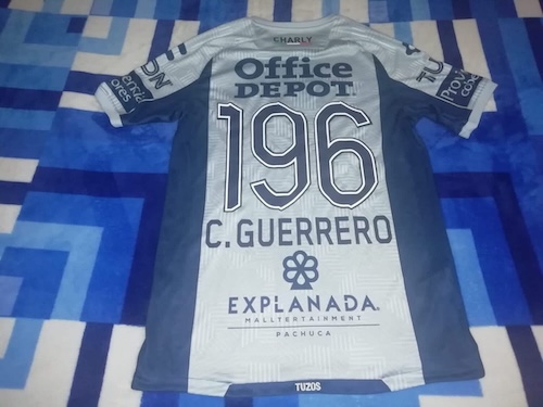 CLUB PACHUCA JERSEY MATCH WORN CANCER DE MAMA GUERRERO, CHICO.