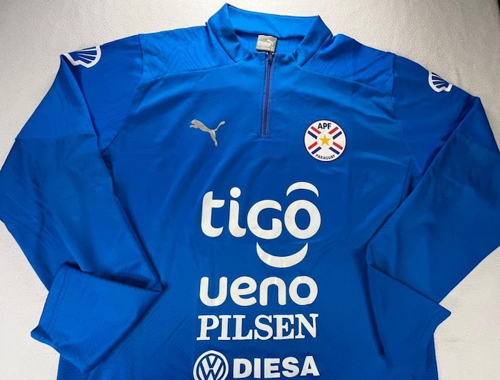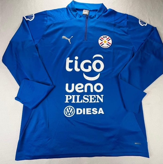 SELECCION PARAGUAY SUDADERA DE PRACTICA USADA POR JUGADOR, TALLA GRANDE.